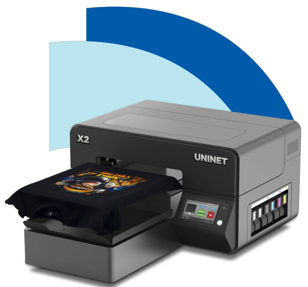The UNINET® X2™ is a professional Two-in-One DTG and DTF printing system designed to give custom apparel decorators maximum flexibility without added complexity. By combining Direct-to-Garment and Direct-to-Film technologies on a single platform, it enables businesses to produce high-quality prints efficiently while expanding their product offerings.